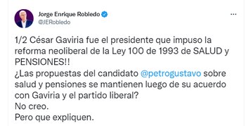 Sin embargo hubo algunos políticos como Jorge Enrique Robledo quienes se mostraron preocupados por esta unión. “César Gaviria fue el presidente que impuso la reforma neoliberal de la Ley 100 de 1993 de SALUD y PENSIONES!!¿Las propuestas del candidato Gustavo Petro sobre salud y pensiones se mantienen luego de su acuerdo con Gaviria y el partido liberal? No creo. Pero que expliquen”,