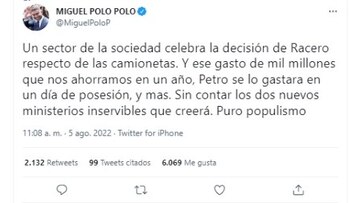 Miguel Polo Polo dijo que sería uno de los más acérrimos contradictores y opositores del gobierno de Gustavo Petro, quien tomará las riendas del país a partir de este 7 de agosto en Bogotá. El representante a la Cámara por las negritudes no se mostró contentó con las medidas de austeridad que se vienen tomando desde la presidencia de la Cámara a cargo del congresista David Racero.