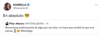 Sobre la retractación, el hijo mayor del expresidente Juan Manuel Santos, Martín, escribió que le alegraba que la vicepresidenta Francia Márquez “esté logrando las rectificaciones y disculpas de quienes la insultaron y señalaron injustamente. En Colombia no hay cabida para el racismo”. Marbelle, que fue etiquetada en esa publicación por varios usuarios de la red social, decidió replicar el comentario y contestar: “Un tuit muy Nobel”.