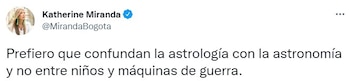 De igual manera otro comentarios apoyaron a Miranda y cuestionaron al ministro de Defensa del Gobierno del expresidente Iván Duque. “Confundir astrología con la astronomía no mata a nadie, pero confundir un civil con un combatiente, sí. Fin del comunicado”.