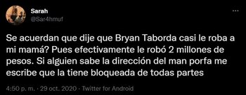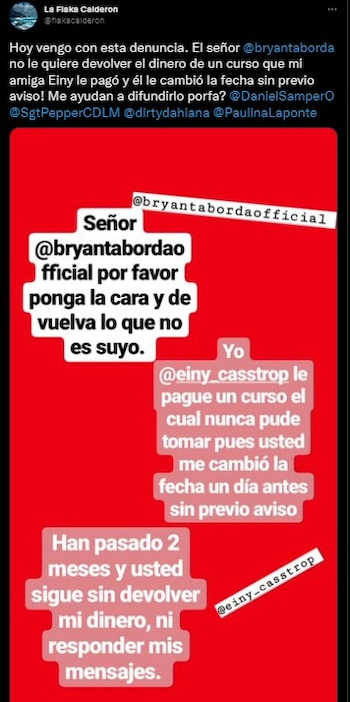 El posteo de Arrieta, además de generar críticas en contra de Bryan Taborda por parte de la comunidad internauta, hizo que otras supuestas víctimas relataran sus casos de estafa con el joven.