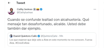 Este comentario fue rechazado por la congresista de la Alianza Verde, Catherine Juvinao, quien también ha trabajado de cerca con el Pacto Histórico. La representante a la Cámara afirmó que, “Cuando se confunde lealtad con alcahuetería. Qué mensaje tan desafortunado, alcalde. Usted debe también dar ejemplo”.