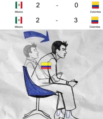 Ya sin la ventaja y con una Colombia agresiva, los mexicanos terminaron cediendo al minuto 68, tras un espectacular golazo del cartagenero Wilmar Barrios asistido por la figura del Eintracht Fráncfort de la Bundesliga Rafael Santos Borre.