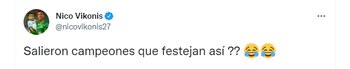 “Salieron campeones que festejan así ??”, escribió en una publicación el guardameta uruguayo, generando una enorme polémica y recibiendo toda clase de comentarios por parte de algunos hinchas de Santa Fe. Un usuario le respondió a Nicolás Vikonis y señaló, “Esta es la frase que refleja el dolor de perder un clásico en 10 minutos y para rematar les levantan un 0-2″.