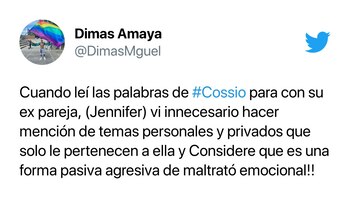 Cabe resaltar que, Jenn Muriel también respondió a la publicación de su expareja, pero su mensaje no condenó lo que en redes están criticando; sin embargo, los internautas señalan que su respuesta sí demostró que ella está en otra etapa de su vida. “El deseo es mutuo, siempre feliz de tus triunfos y verte cumplir tus sueños.Gracias por venir, fue muy bonito haber podido compartir contigo este día”, le escribió la creadora de contenido a Cossio.