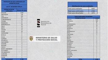 Si bien Colombia alcanzó 2.453 casos confirmados, los contagios nuevos del 4 al 10 de octubre fueron 277. Las zonas en las que hubo casos durante ese periodo fueron: Antioquia, Bogotá, Cali, Cundinamarca, Santander, Tolima, Risaralda, Barranquilla, Cartagena y Meta.