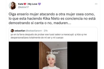 “Criticar a Kika Nieto por cualquier cosa que sube ya es demasiado vintage, maduren”; “Qué bobada con Kika Nieto, la molestan a ella por un video que tiene toda la razón, revísense esas tetas pues y dejen de joderla”; “Lo que está haciendo Kika Nieto es conciencia no está demostrando si canta o no, maduren”; “En serio están criticando a Kika Nieto por hace una canción incentivado al autoexamen de mama? Vayan a revisarse”, fueron algunos de los comentarios.