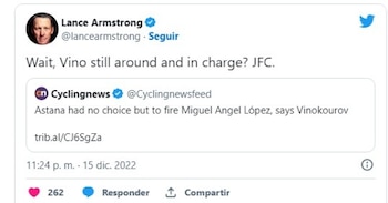 El caso del ciclista colombiano Miguel Ángel López y el equipo Astana llegó a oídos del exciclista estadounidense, Lance Armstrong, quien no dudó en reaccionar de manera controversial ante el despido del cafetero.
