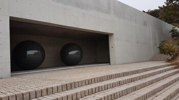 Comenzar el recorrido por Lee Ufan Museum es elegir un in crescendo. En un valle –frente a la montaña, el mar- combina una selección de la obra del artista coreano que le da nombre al museo y del arquitecto Tadao Ando, responsable del diseño de este lugar –hecho en función de las obras que contiene, y no al revés- y de otros siete en la isla. Ya el perfil de ambos –exposiciones en el Guggengheim de Nueva York en el caso del coreano, y los premios de la orden del arte y las letras de París, y el título de profesor emérito de la Universidad de Tokio en el caso del japonés- expresan la tónica del tipo de creadores que habitan el lugar: consolidados. El catálogo del Lee Ufan se vuelve redundante: dice que el espacio invita a una "contemplación serena". ¿Sería posible que fuera de otra manera, en ese espacio enorme, con varias obras hechas en piedra, y en silencio total?
