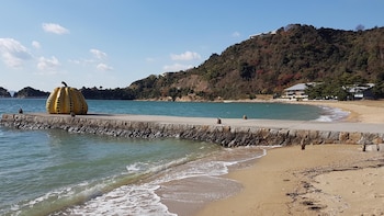 A la derecha del primer zapallo, también pegada al mar, el "Naoshima pavillion", del arquitecto Sou Fujimoto, una figura irregular ahuecada, de unos siete metros de altura, armada con tejidos de metal blanco. Al entrar se ve el mar, el puerto, el zapallo rojo y las sobrias fachadas de las casas, orientales, clásicas; la costa sin playa. Estas son algunas de las 20 obras al aire libre: una de las tantas que conspiran para que Naoshima tenga un sello visual identitario tan fuerte. Algunas pertenecen a Benesse, otras, como las citadas, al municipio. En la isla se alzan 4 museos y 7 "Art houses", residencias hoy intervenidas.