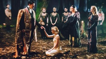 Sin embargo, Sabrina pone en evidencia que se le está mintiendo descaradamente durante el bautismo y cuestiona la autoridad del Sacerdote. Algunos detalles pintorescos a tener en cuenta son el hecho de que tenga que ser una virgen, y que éste sea un rito realizado por hombres mayores y más poderosos en el que se la despoja de sus ropas y se la trata con inferioridad ("Tengo mis reservas sobre guardarme para el Señor Oscuro ¿Por qué puede él decidir qué hago o no con mi cuerpo?" se pregunta enérgica la joven aprendiz).