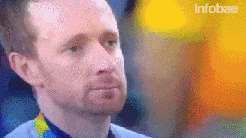 El ciclista británico demostró que el momento del himno puede tener su lado gracioso.