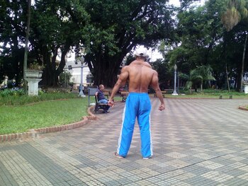 "Me llaman Hulk, Schwarzenegger y He-Man todo el tiempo y me gusta. Ya dupliqué el tamaño de mis biceps, pero quiero que sean más grandes", cuenta este hombre quien durante su juventud consumió drogas. "Estuve involucrado en drogas y empecé a perder peso porque no comía, estaba en la mala vida", añade.