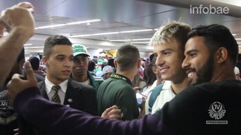 Un centenar de fanáticos se acercó al Aeropuerto Internacional de San Pablo para recibir a sus "guerreros", quienes habían vencido a los rivales por 3-2, después de ir perdiendo por 2-0.