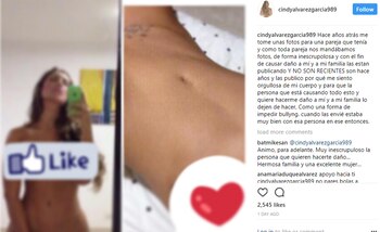 Cindy Álvarez también explicó qué la llevó a mostrar sus fotos en su cuenta en la red social: "Las publico porque me siento orgullosa de mi cuerpo y para que la persona que está causando todo esto y quiere hacerme daño a mí y a mi familia lo dejen de hacer".
