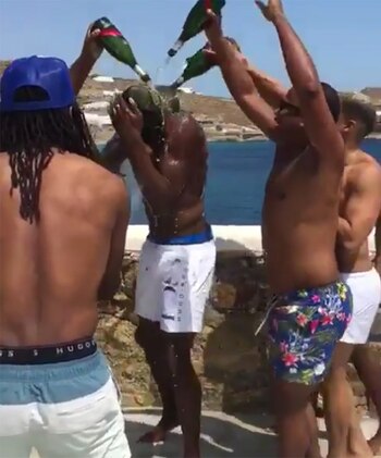 En las imágenes se ve cómo sus amigos lo rodean y lo bañan en champagne de una reconocida marca. Todos están en traje de baño y cerca de una playa, con el mar de fondo. "Qué tiempo para estar vivo", escribió Bolt.