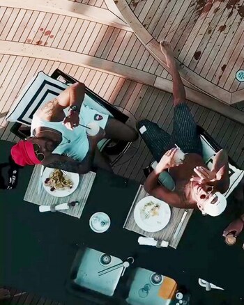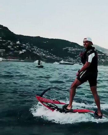Hamilton subió un video en el que se lo ve relajado y divirtiéndose con amigos en un lujoso yate. En las imágenes se lo puede observar mientras surfea. También se destaca la compañía de mujeres en bikini rodeadas de botellas de alcohol.