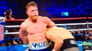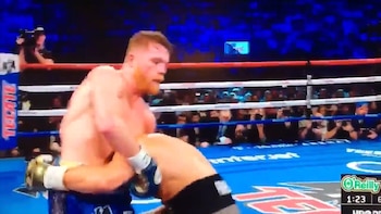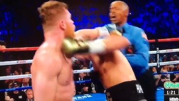 El insólito episodio tuvo lugar en el sexto round. Después de cruzar unos golpes, la cabeza del campeón defensor del título quedó debajo del brazo izquierdo de "Canelo", quien lo agarró como si fuese un movimiento de lucha libre.