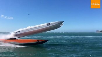El 37° Campeñonato anual de Cayo Hueso, en Florida, llegó a su fin y dejó una de las imágenes más impactantes del fin de semana. Este domingo, en el último día de competencia, el Powerboat CT Marine colisionó con el Poweboat CMS.