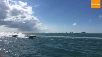 El público presente en el Campeonato Mundial de Regatas de Key West quedó impactado después de ver el espectacular choque entre dos lanchas, las cuales suelen alcanzar velocidades de hasta 200 kilómetros por hora.
