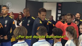 Las "mascotas", como se los denomina a los pequeños que ingresan con los jugadores al campo de juego, insistieron con la pregunta que todo el mundo se hizo en algún momento: "¿Por qué dejaste Barcelona?".