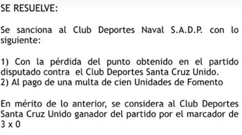El joven paraguayo Luis Riveros, de 19 años, no estaba inscrito con los documentos correspondientes para jugar como extranjero en el club. Por eso, Deportes Santa Cruz reclamó los puntos que desde entonces se estaban dirimiendo en las oficinas del Tribunal de Disciplina.