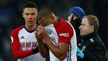 Una triste acción protagonizaron los futbolista Salomón Rondón y James McCarthy durante el partido que Everton y West Bromwich Albion disputaron este sábado por la fecha número 24 de la Premier League.