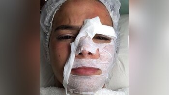 Bruna se estaba realizando un tratamiento de belleza cuando Ney decidió tomarle una foto: se la ve con una cofia cubriendo el cabello y varias gasas sobre su rostro. El ex Barcelona acompañó la publicación con la leyenda "estás muy linda, mi amor".