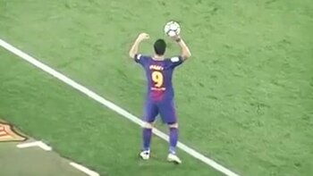 El cuarto intento también fue muy evidente ya que Luis Suárez no es el encargado de hacer los laterales en el Barcelona. Tardó mucho tiempo en hacerlo pero al ver que el referí no iba a cobrar se resignó. Un quinto intento golpeando al rival tampoco funcionó.