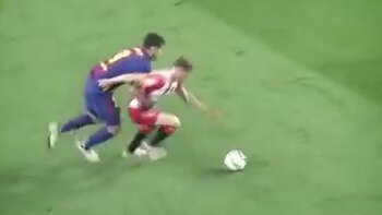 La tercera ocasión fue una de las más insólitas ya que trató de agarrar el balón con la mano en plena jugada y, tras no conseguirlo, intentó agarrarle los pies al jugador del Girona. Aún así, el árbitro, que ya sabía lo que intentaba hacer el uruguayo, no sacó su tarjeta.