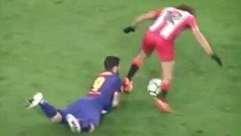 Cuando el duelo catalán ya estaba resuelto en el marcador, Suárez trató de conseguir la tarjeta amarilla a toda costa. Según un informe del canal Cuatro de España, fueron cinco descarados intentos por hacerse amonestar.