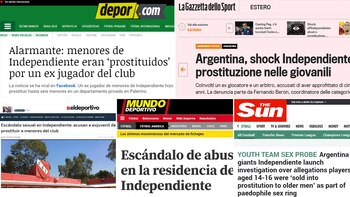 Por su parte, el diario inglés The Sun hizo hincapié en su titular en los detalles revelados por el niño que destapó el escándalo, quien especificó que él y otros compañeros eran trasladados en horas de la tarde desde Villa Domínico, al sur de Buenos Aires, donde está la residencia de Independiente, hasta un departamento del barrio de Palermo, en el centro de la provincia, para mantener relaciones sexuales con hombres mayores a cambio de dinero.