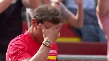 La situación fue tan tirante que al ganar la tercera manga con un tiro que tocó el fleje y cayó del lado alemán, Rafael Nadal saltó desde su lugar y gritó eufóricamente junto a los fanáticos.