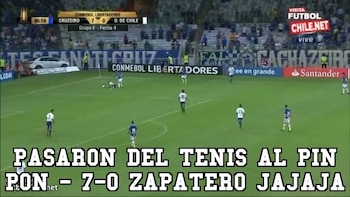 El Cruzeiro se reenganchó en la lucha para los octavos de la Copa Libertadores tras endosar un severo 7-0, con tantos de Rafinha, Arrascaeta, Sóbis y dobletes de Sassá y Thiago Neves, a un Universidad de Chile que acabó desquiciado y con dos jugadores expulsados.