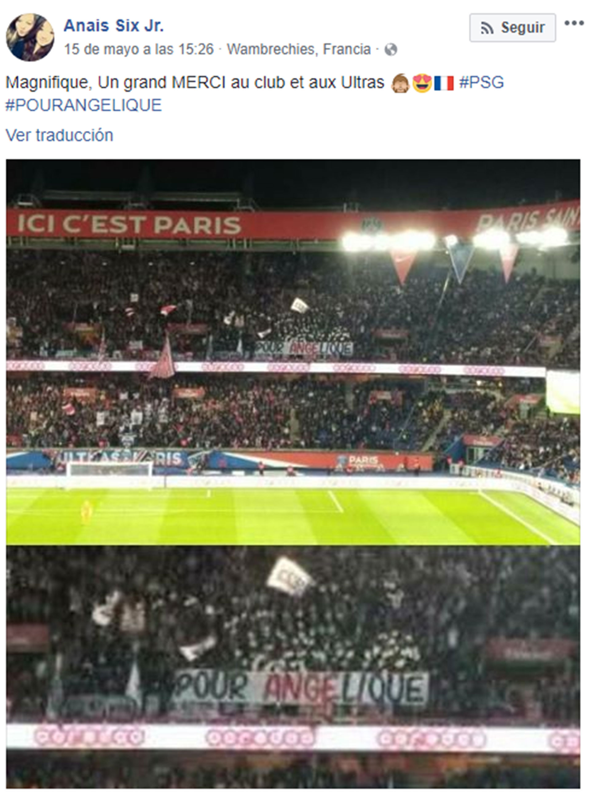 La hermana de la pequeña, Anais, agradeció el gesto tanto de Neymar como del PSG y sus fanáticos, quienes desplegaron una bandera en el Parque de los Príncipes durante el último partido ante el Rennes que decía: "Para Angélique".