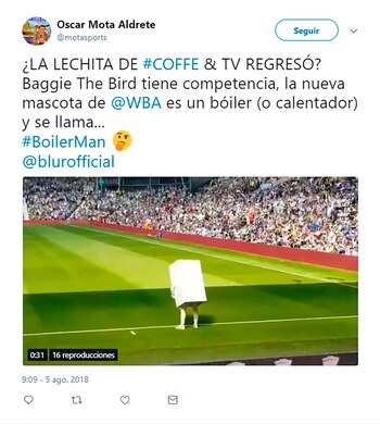 Pese a ver como su equipo perdía el primer partido de la temporada, los fanáticos del West Bromwich Albion comenzaron la jornada a pura risas y bromas dentro del The Hawthorns Stadium al ver a la nueva mascota del equipo.