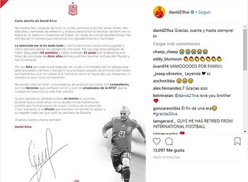 El jugador asturiano, que en los doce años que ha jugado con la selección ha anotado 35 goles, hizo pública su decisión a través de una carta abierta en la que recordó que el equipo nacional se lo ha dado "todo" y le ha permitido crecer "como jugador y como persona" desde las categorías inferiores.