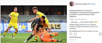 Tras el debut y la desafortunada acción que protagonizó Cristiano Ronaldo con la Juventus, la cual despertó una ola de críticas por su reacción mientras el arquero del Chievo Verona estaba tendido en el césped, Stefano Sorrentino hizo público el mensaje que le envió el portugués.