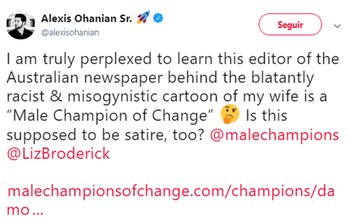 Ohanian reveló que el editor del Herald Sun, Damon Johnston, integra el sitio web de los Campeones Masculinos del Cambio, un organismo que se describe como "líderes influyentes para definir el papel de los hombres en la acción contra la desigualdad de género".
