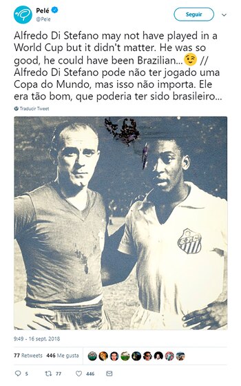 "Di Stefano puede no haber jugado una Copa del mundo, pero no importa. Él era tan bueno, que podría haber sido brasileño…", comentó.