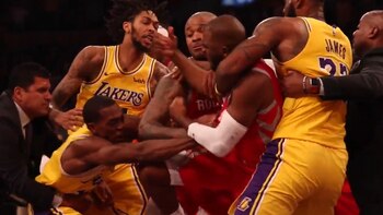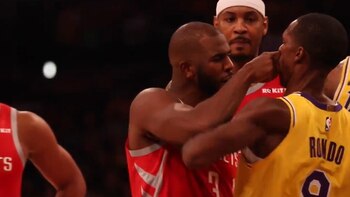 Posteriormente, el jugador de Houston le metió un dedo en el ojo y el base de la franquicia de Los Ángeles lo golpeó ferozmente y desató una batalla en la que LeBron James intervino sujetando a Paul justo cuando éste recibía el castigo de Ingram, para luego separarlo de la trifulca.