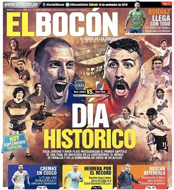 También Boca y River aparecen en algunos medios de la región, ya que son protagonistas del clásico más importante de América. El periódico que más importancia ha dado al duelo fue El Bocón de Perú, con una portada íntegramente dedicada a la final de la Copa Libertadores.
