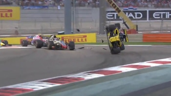 El coche de seguridad ha entrado en pista en el Gran Premio de Abu Dhabi, el vigésimo primero y último del Mundial de Fórmula Uno, que se disputa este domingo en el circuito de Yas Marina, después del choque en la primera vuelta.