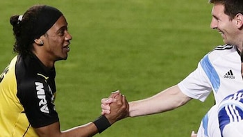 Ronaldo de Assis Moreira se presentó ante los más de 9.500 fanáticos y desplegó su magia por algunos minutos. Posteriormente, el campeón del mundo con Brasil abandonó el recinto por la puerta de atrás y se subió rápidamente a un auto.