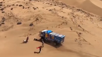 En el video, que compartió uno de los fanáticos que se encontraba en el lugar, se pudo ver al grupo de fanáticos lejos de la zona delimitada. Cuando Karginov aceleró para adentrarse en las dunas, muchos salieron corriendo pero el sudafricano cayó al suelo y no pudo recomponerse.