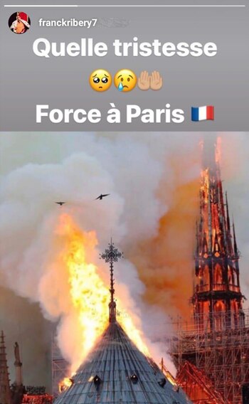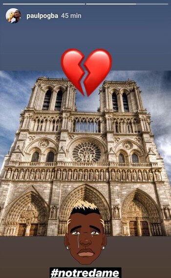 En los últimos días varios deportistas se manifestaron en las redes sociales por el incendio que azotó a la emblemática catedral francesa. Los futbolistas galos Kylian Mbappé, Olivier Giroud, André–PierreGignac, Franck Ribery, Paul Pogba y Blaise Matuidi publicaron imágenes en sus cuentas de Instagram sobre el incendio, acompañadas de emojis de tristeza y lamento.
