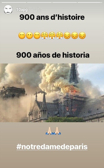 También mostraron su dolor el brasileño Neymar, los argentinos Leandro Paredes y Giovani Lo Celso y el croata Ivan Rakitic. A la causa se sumó el ex arquero paraguayo José Luis Chilavert, quien en su cuenta de Twitter escribió: "Mi solidaridad con los hermanos de Francia, por el incendio de la Catedral de Notre Dame en París, símbolo de la historia, cultura y la fe. Fuerza Francia".