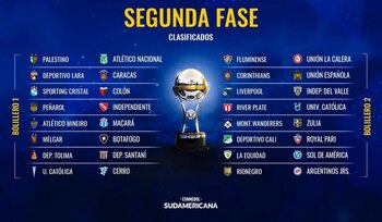 BOMBO 2: Argentinos Juniors, Royal Pari, Corinthians, Fluminense, Unión Española, Unión La Calera, Rionegro Águilas, La Equidad, Independiente del Valle, Universidad Católica de Ecuador, Sol de América, Montevideo Wanderers, Liverpool, River Plate de Uruguay y Zulia FC.