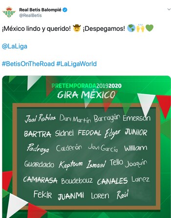 ¡México, allá vamos! ✈🇲🇽😎@LaLiga#BetisOnTheRoad #LaLigaWorld pic.twitter.com/Ke9HFSYdpi
