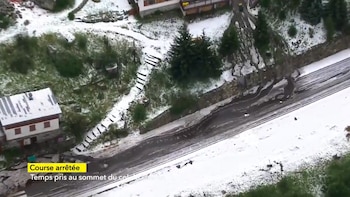El motivo fue el mal estado de la carretera a las puertas de Val d'Isère. Una granizada tremenda desfiguró la ruta. Restaban 22 kilómetros para meta y los trozos de hielo caían del cielo con auténtica violencia.
